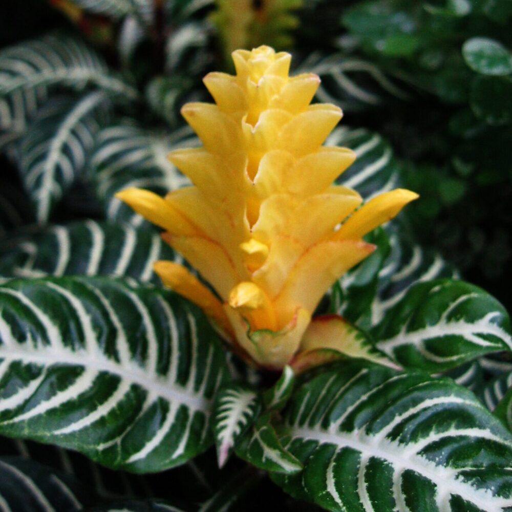 | 特徴 | シマウマのような白い葉脈、黄色い花苞 |